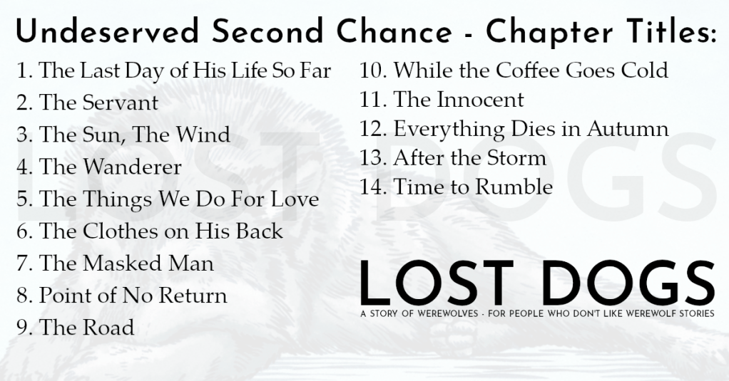 Yesterday, I uploaded the revised edition of the second book in the Lost Dogs series, Undeserved Second Chance. This one needed a lot more work than the previous book, which surprised me, as there weren’t any major content changes to deal with. I didn’t have to replace an entire chapter with two new ones, like with book one.